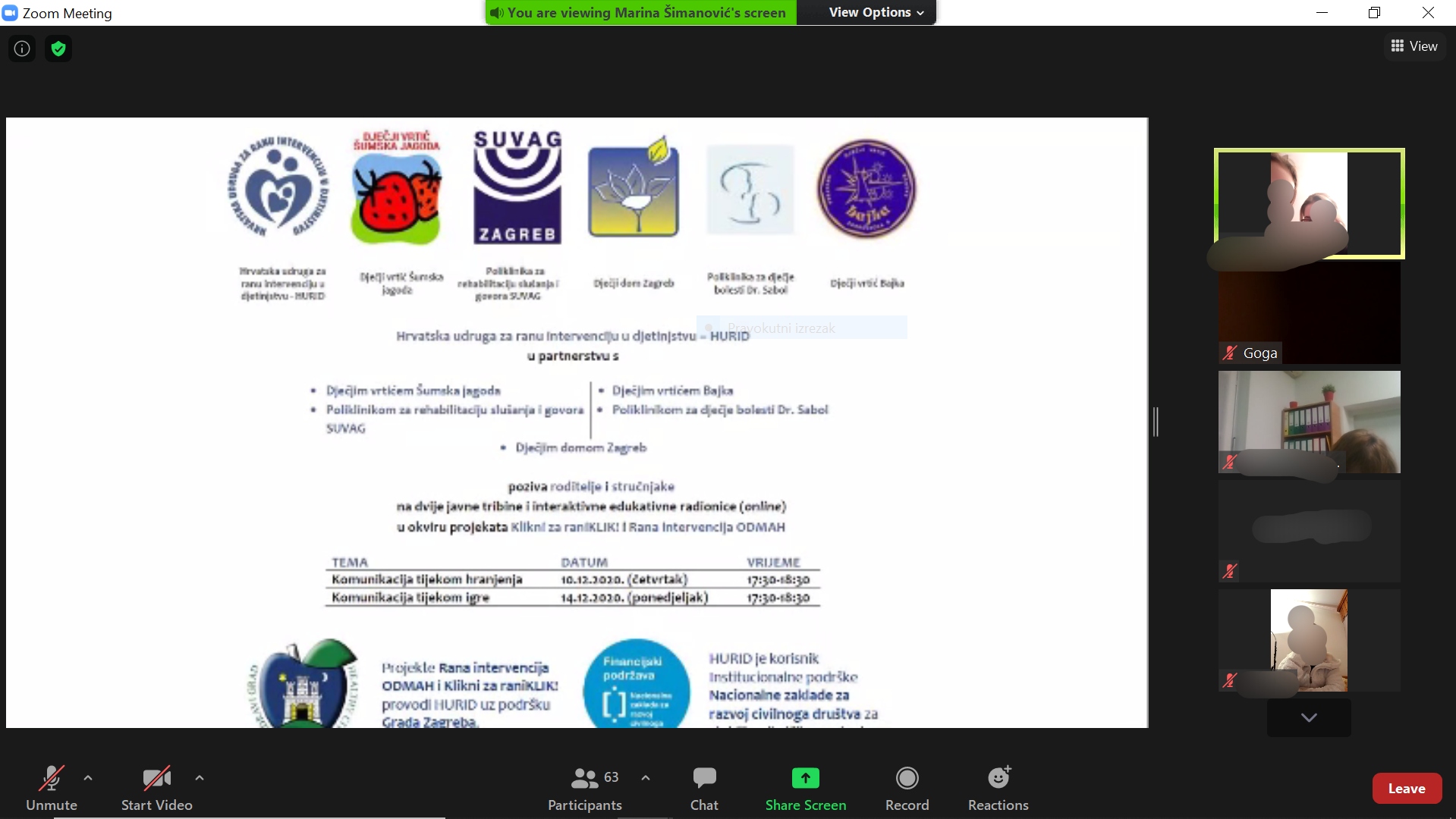 U okviru projekata „Klikni za raniKLIK!“ i „Rana intervencija ODMAH“ koji se provode uz podršku Grada Zagreba, 10. i 14. prosinca 2020. održane su Pročitajte više