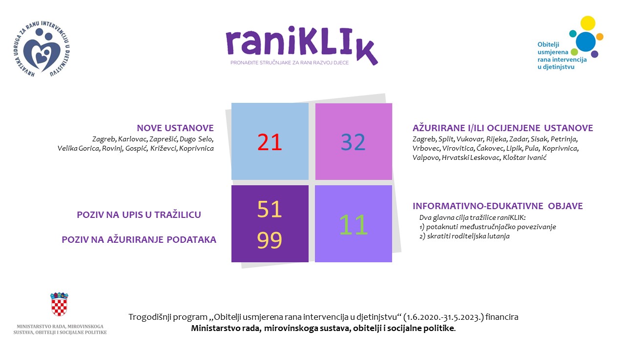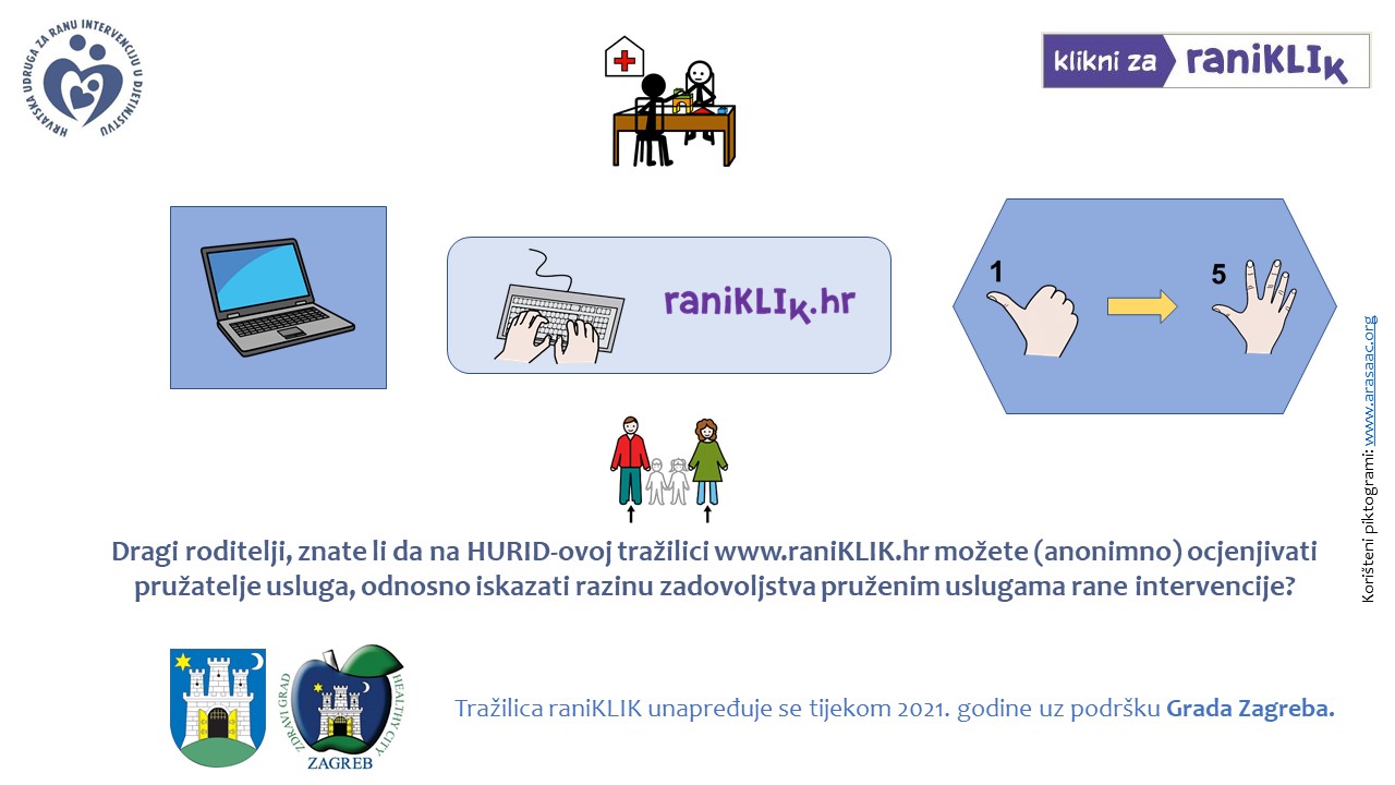 HURID-ov raniKLIK.hr pomaže zabrinutim roditeljima u brzom pronalaženju stručnjaka rane intervencije u lokalnoj zajednici , stručnjacima daje priliku za međusobno povezivanje te sadrži podatke Pročitajte više