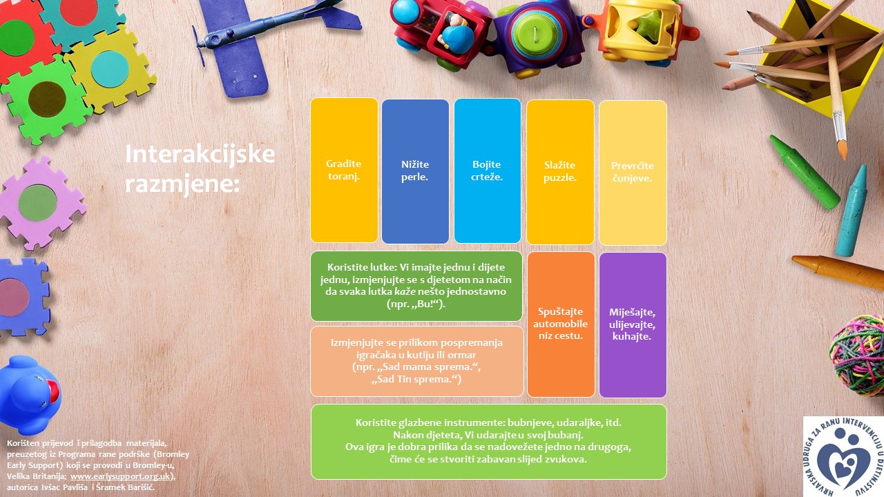 Razmjena je osnova interakcije s drugom osobom. Tijekom interakcije uvijek trebamo koristiti jednostavan jezik: npr. „Sad Sara, sad tata.“ Poticanjem interakcije i komunikacije posljedično Pročitajte više