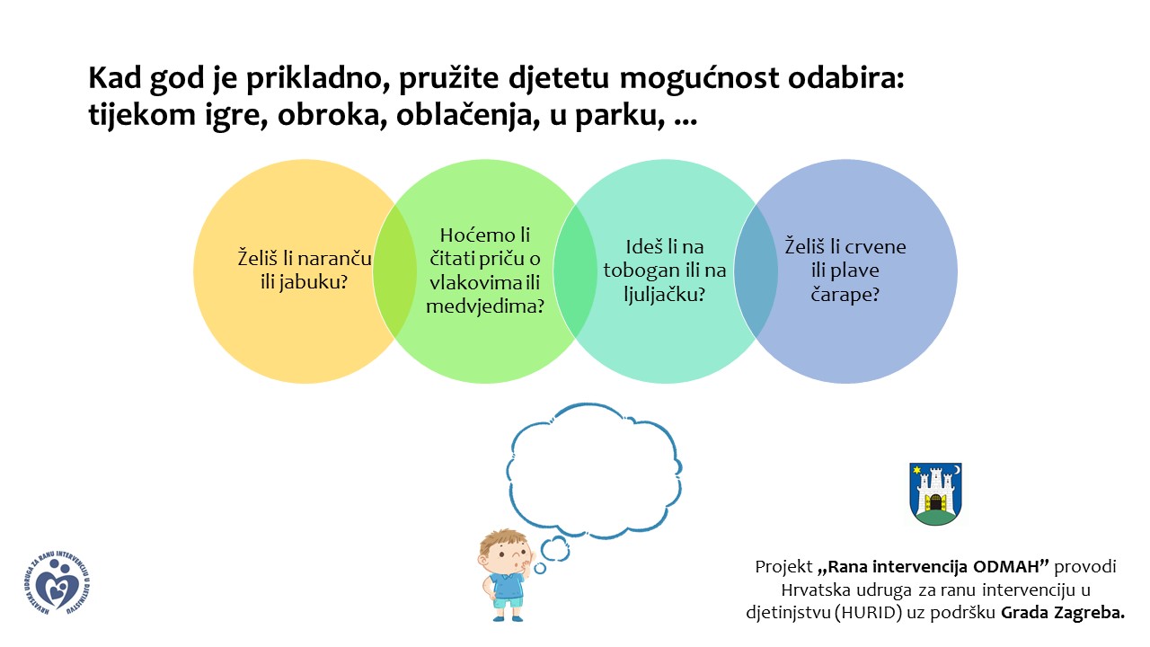 Mogućnost odabira (.pdf) pruža djetetu priliku za komunikaciju i prijenos ideja. Ako dijete ne govori, potaknite ga da koristi pogled ili gestu . U Pročitajte više