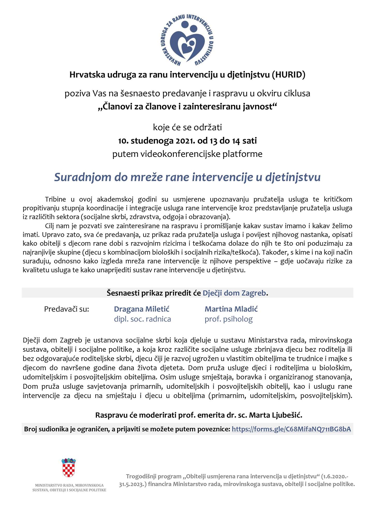 Poštovani i dragi roditelji i stručnjaci Online javna tribina u okviru trogodišnjeg programa Obitelji usmjerena rana intervencija u djetinjstvu, koji se provodi uz podršku Ministarstva Pročitajte više